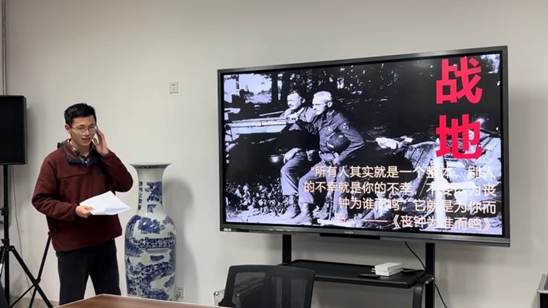 读书使人明智,文学作品引人深思,也为读者在这喧嚣的生活里开垦出一片净土。赵明威同学以海明威的《太阳照常升起》为核心,分享了主题为“文学里的过去,教会我们如何面对未来”的读书感悟。