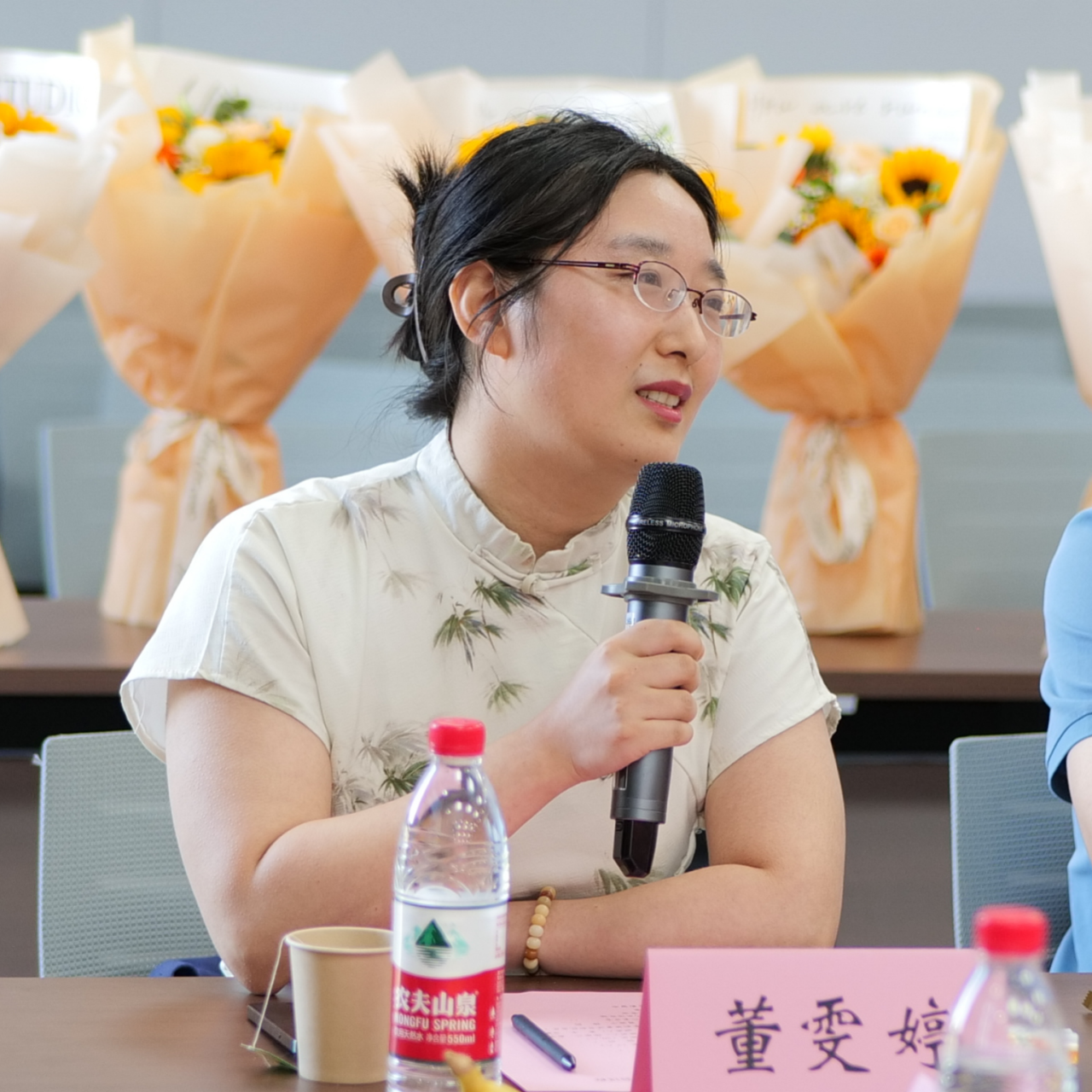 最后,全体学工干部与在场师生合唱《再见》,在依依惜别的旋律中,同学们为老师们送上鲜花,大家共同合影留念。